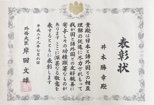 これまでの活動について、平成29年度 外務大臣表彰を受賞しました。