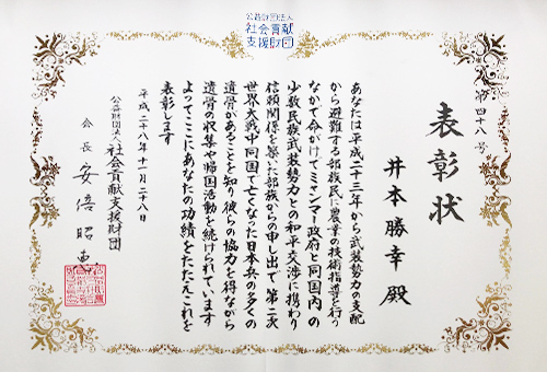 公益財団法人「社会貢献支援財団」による第48号(平成28年度)社会貢献者 日本財団賞を受賞しました。