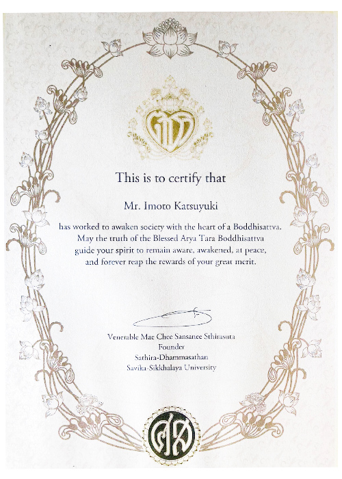タイの著名な社会活動家サンサニー・サティアラスット氏が設立した社会活動団体「サティア・タンマサターン」が、社会に貢献した人を顕彰する目的で設立した「タラ賞」の第一回受賞者に選ばれました。