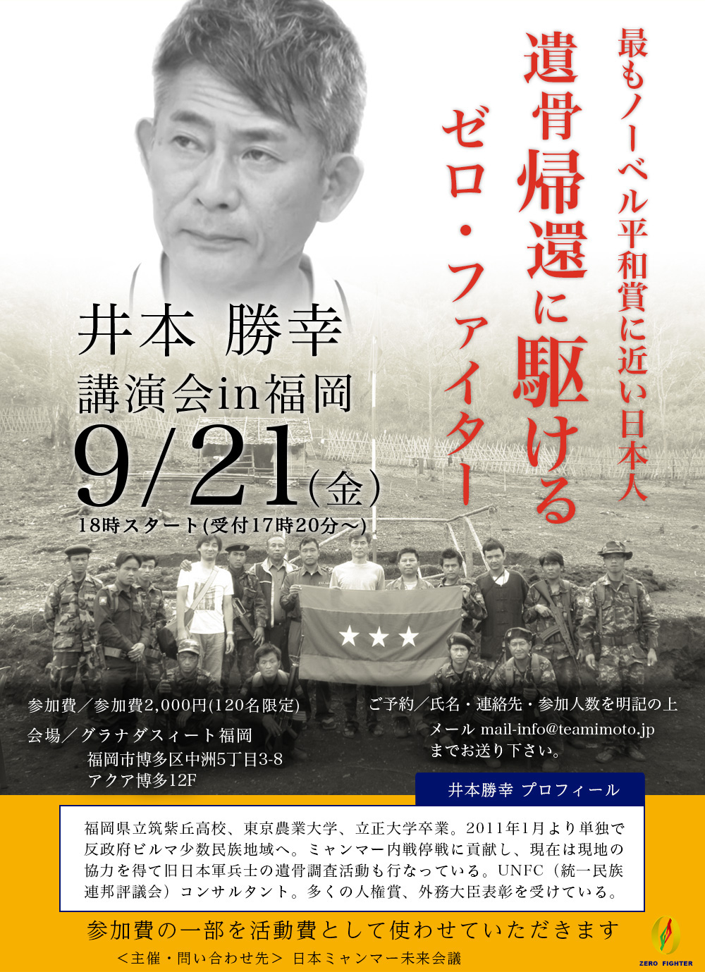 なかなか聞けない井本勝幸の話、ミャンマーの裏側この機会にたくさんの方に知っていただきたく、 学生さんは参加無料になりました。当日受付で学生証をご提示ください。お誘い合わせの上、ぜひご参加ください!